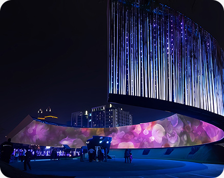 數(shù)字信息時(shí)代,華竣數(shù)創(chuàng)運(yùn)用燈光秀、超清視頻、特種影院等新媒體視覺藝術(shù)的聲光影電炫酷效果調(diào)動觀者的所有感官全身心參與展廳視聽體驗(yàn),享受沉浸式心流狀態(tài)。
